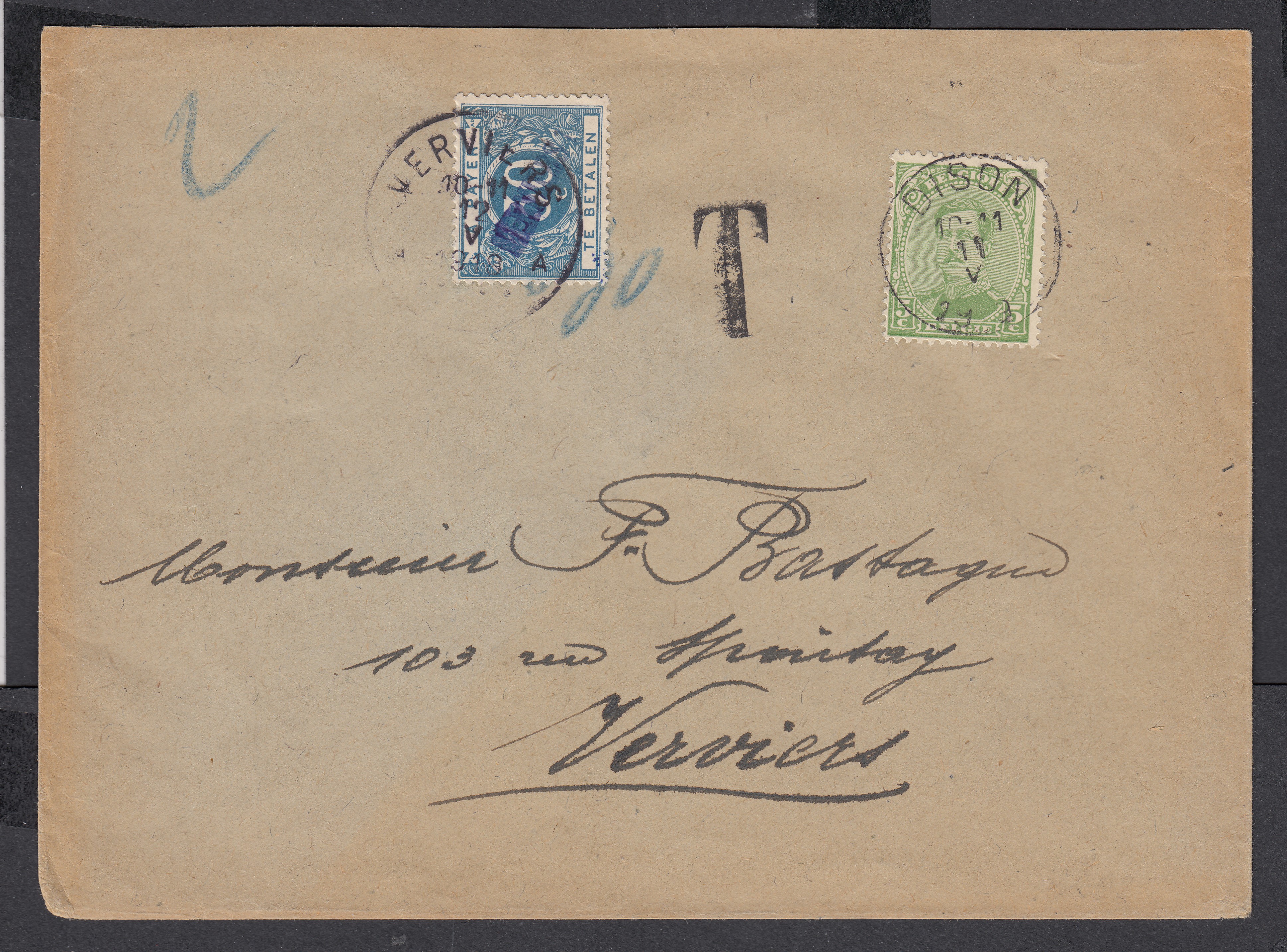 N°137 sur lettre expédiée de Dison le 11.V.1919 à destination de Verviers. Taxée 30c à l'arrivée par N°Tx15A.