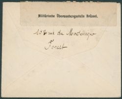 OC16 sur lettre fermé par bandelette de censure de Brussel (1917) > Ixelles + marque de censeur "10""