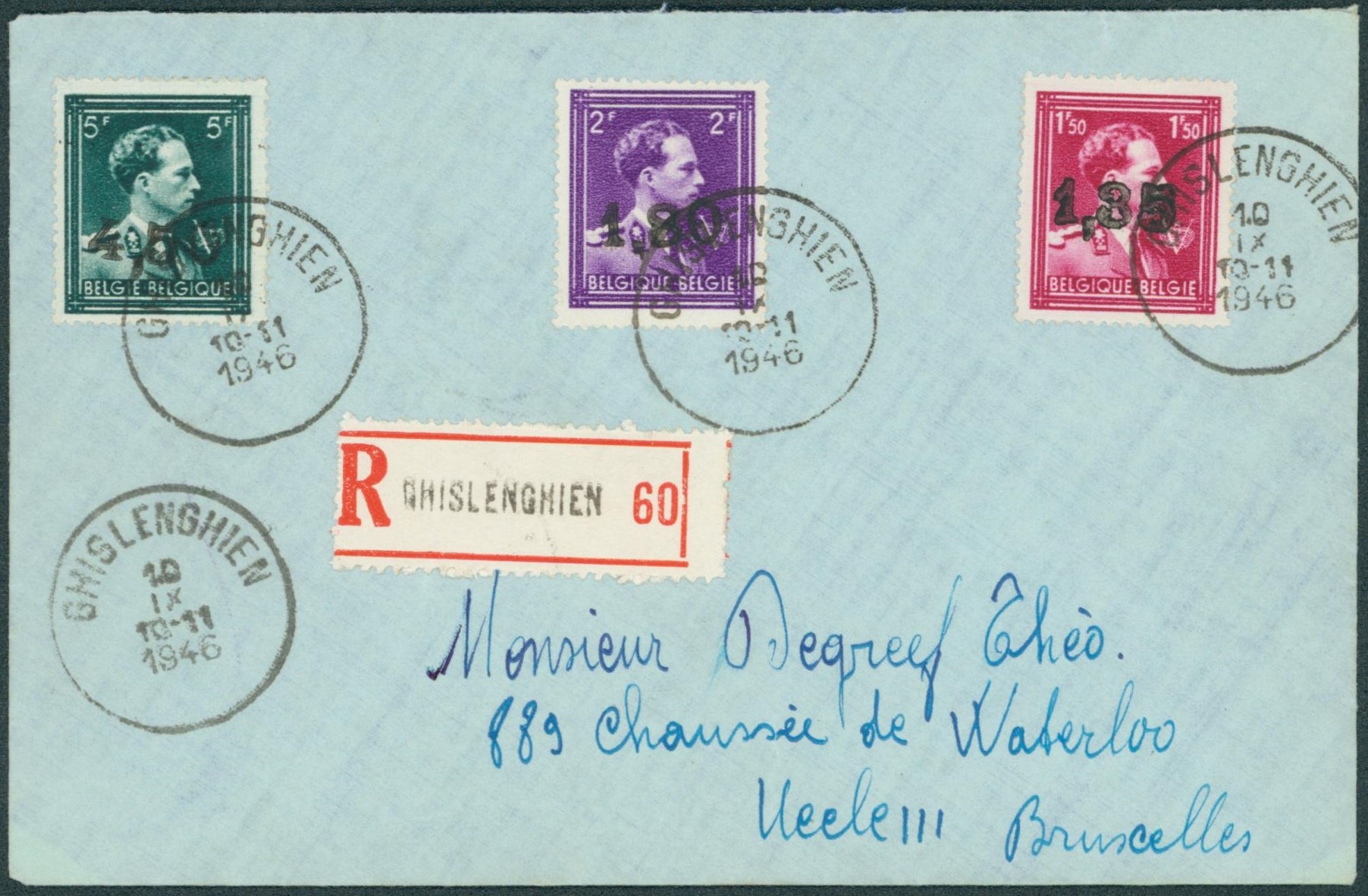 Col ouvert n°724U/724W sur lettre en recommandé de Ghislenghien > Uccle